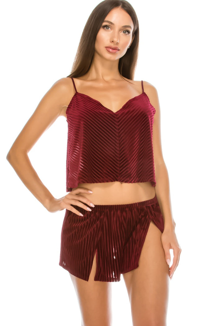 ImportedS.M.L.Velvet Stripe PJ Set100% PolyesterBurgundyBUL Velvet Stripe Pj Set