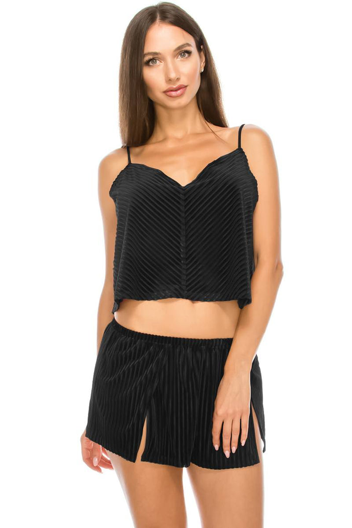 ImportedS.M.L.Velvet Stripe PJ Set100% PolyesterBlackBUL Velvet Stripe Pj Set