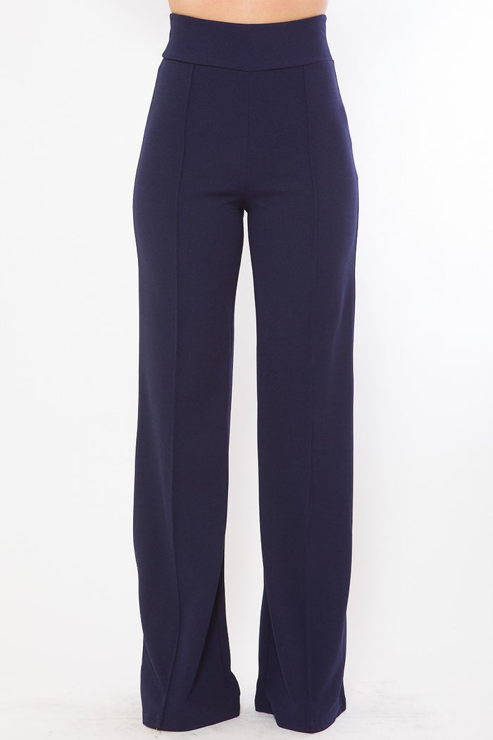 Imported S.M.L Perfect Fit Solid Pants. Front-line Flared Leg Design. Zipper on Back 95% Polyester 5% Spandex Navy VAL Perfect Fit Solid...