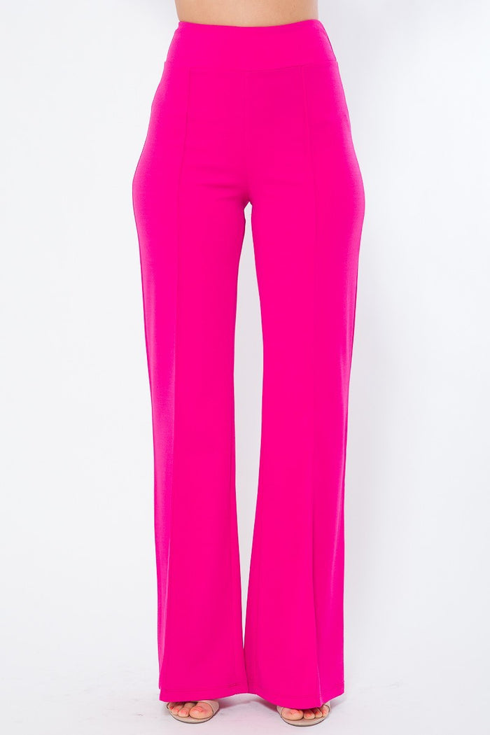 Imported S.M.L Perfect Fit Solid Pants. Front-line Flared Leg Design. Zipper on Back 95% Polyester 5% Spandex Fuchsia VAL Perfect Fit Solid...