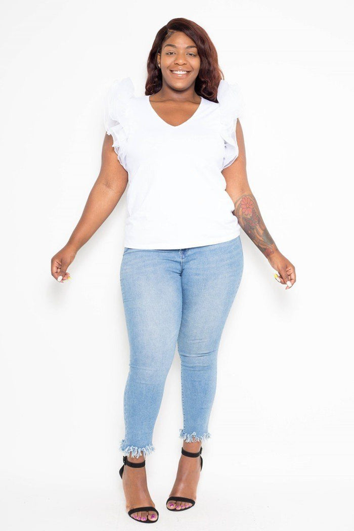 Impoetd 1XL.2XL.3XL high-low design, raw hemline, v-neckline, unlined, solid, short sleeves, asymmetrical hem. 100% Rayon Indigo TSH Plus Size Indigo...