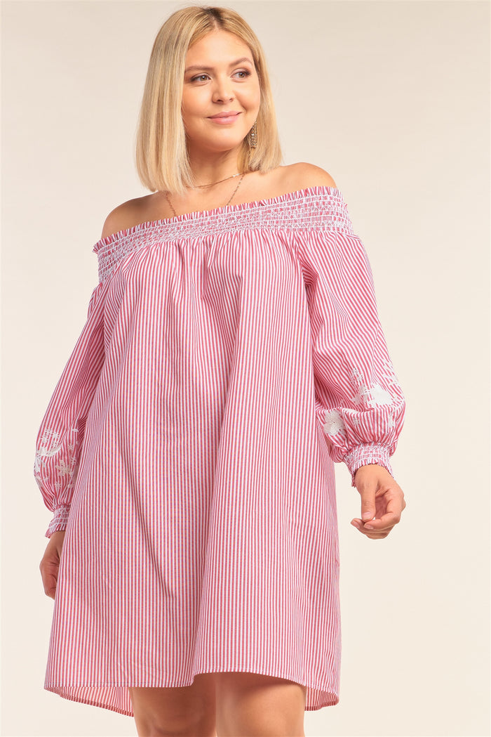 Imported 1XL.2XL.3XL Red & white stripped print, long sleeves with elastic cuffs, sleeve floral embroidered, elastic neckline, off the shoulder...