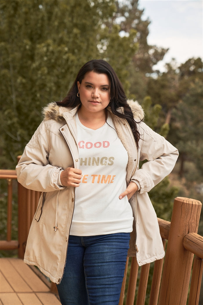 Imported XL.1XL.2XL.3XL solid color, cotton twill parka fabric, collared neckline, zip-off detachable hood with undetachable vegan fur trim and draw-string for...