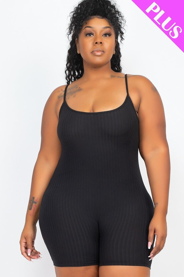 Imported 1XL.2XL.3XL 8x4 Ribbed knit. Strappy. Scoop neck. Solid 92% Polyester 8% Spandex Black CLA Plus Size Ribbed Bodycon Romper Item Measurements: SIZE 1XL Measurements: SIZE...