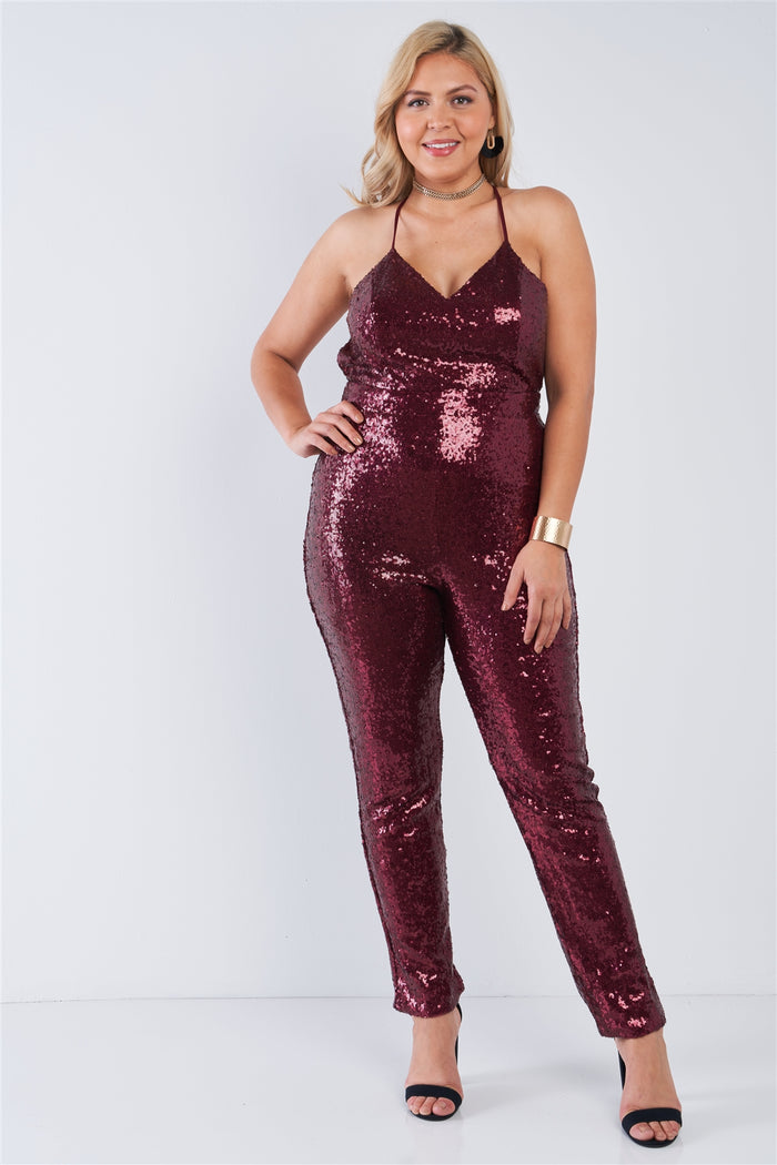 Imported 1XL.2XL.3XL Black sequin, v-neck, sleeveless, adjustable cami straps, elastic waistband, low back, criss cross back detail, low back zipper...