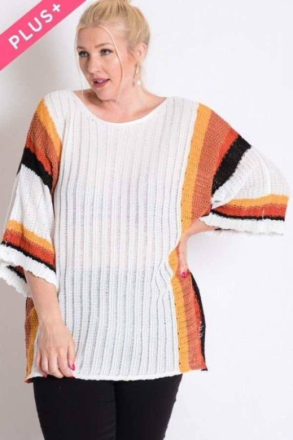 Imported 1XL.2XL.3XL STRIPE ACCENT RIBBEB KNIT SWEATER 100% Polyester White DAV Stripe Accent Ribbeb Knit Sweater Item Measurements: SIZE 1xl Measurements: SIZE 1xl...