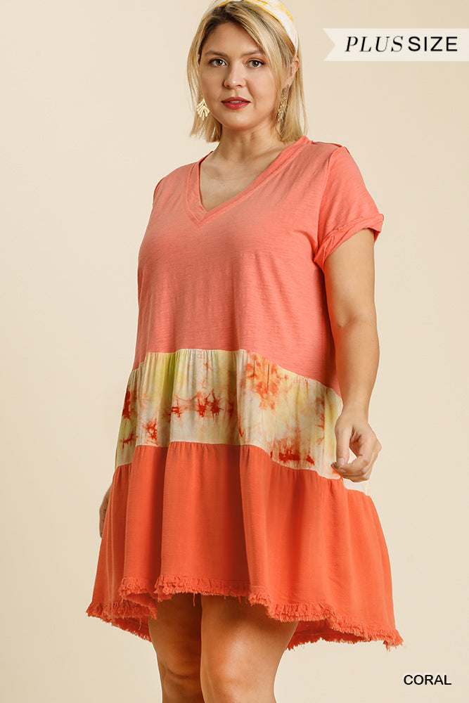 Imported1XL.2XL.3XL*Stretchy Tie Dye Knit Fabric*Ruffle Mock Neckline*Ruffle Trim Sleeves*Pull- On Silhouette96% Nylon 4% SpandexTeal HLA Tie Dye Ruffle High-neck Tank...
