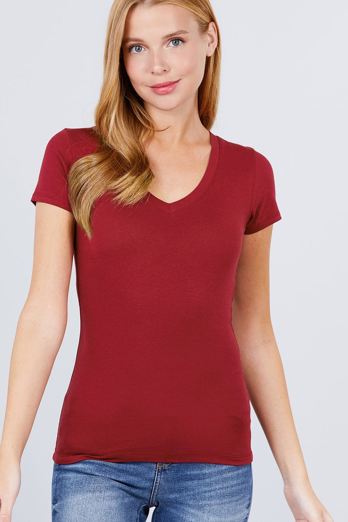 ImportedS.M.LSINGLES SHORT SLEEVE V NECK TEE95% Cotton 5% SpandexRuby BurgundyACT Singles Short Sleeve V Neck Tee