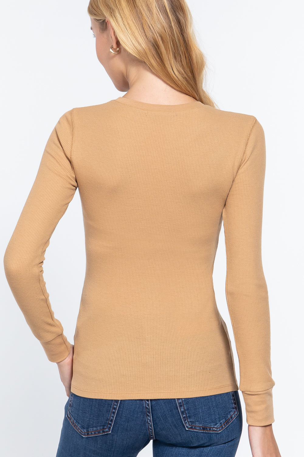 LONG SLEEVE CREW NECK THERMAL KNIT TOP