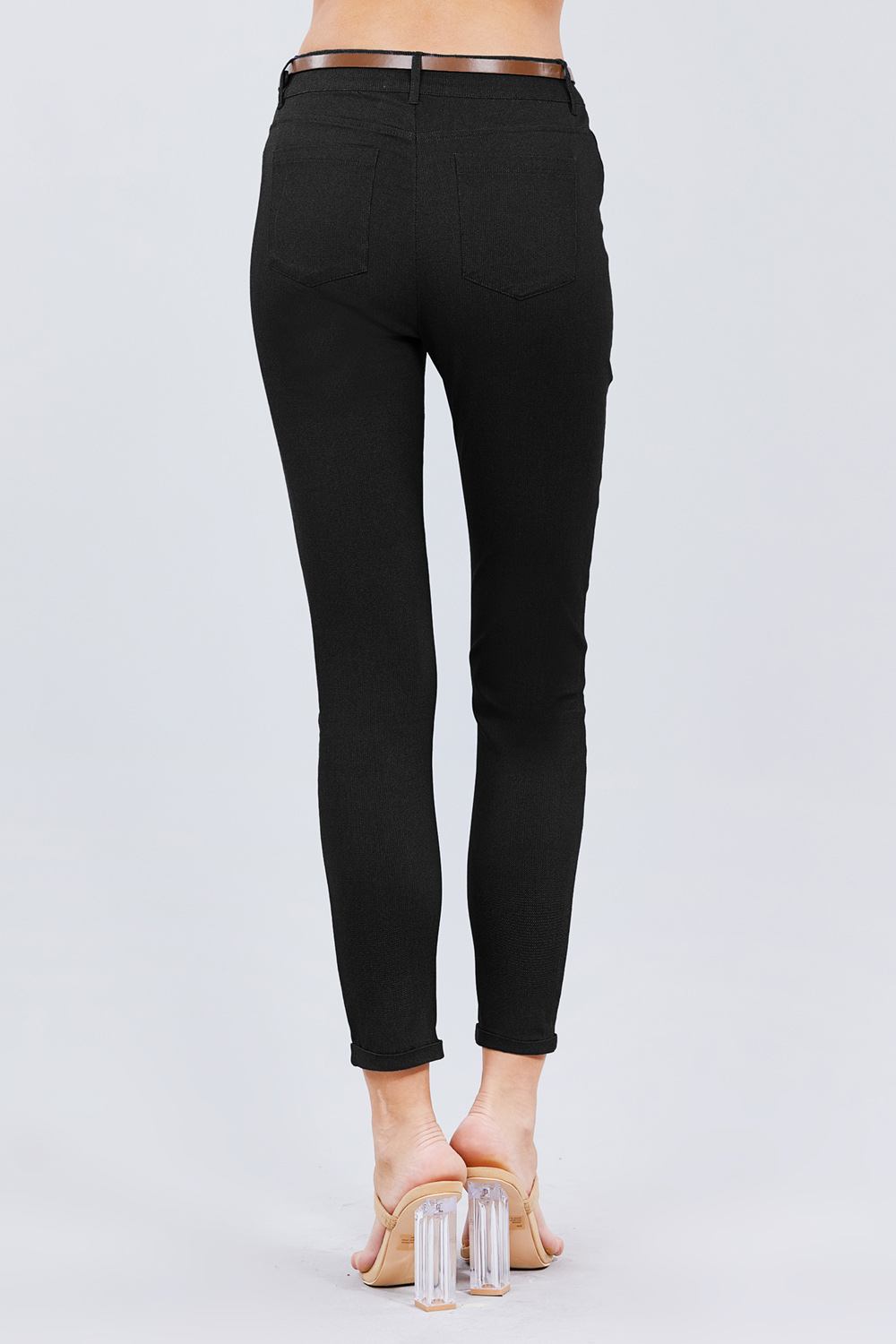 Belted Textured Long Pants