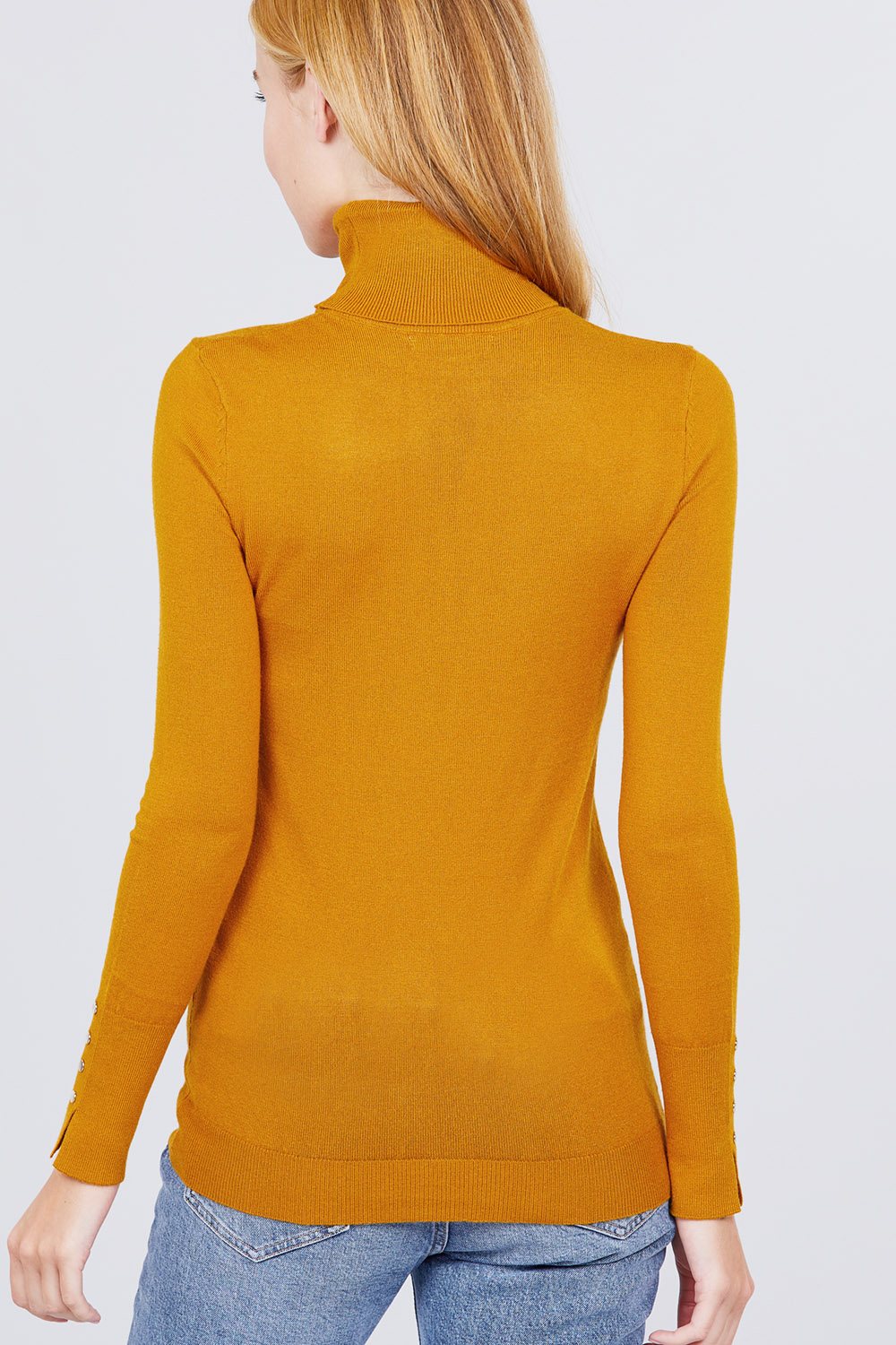 LONG SLEEVE WITH METAL BUTTON DETAIL TURTLE NECK VISCOSE SWEATER