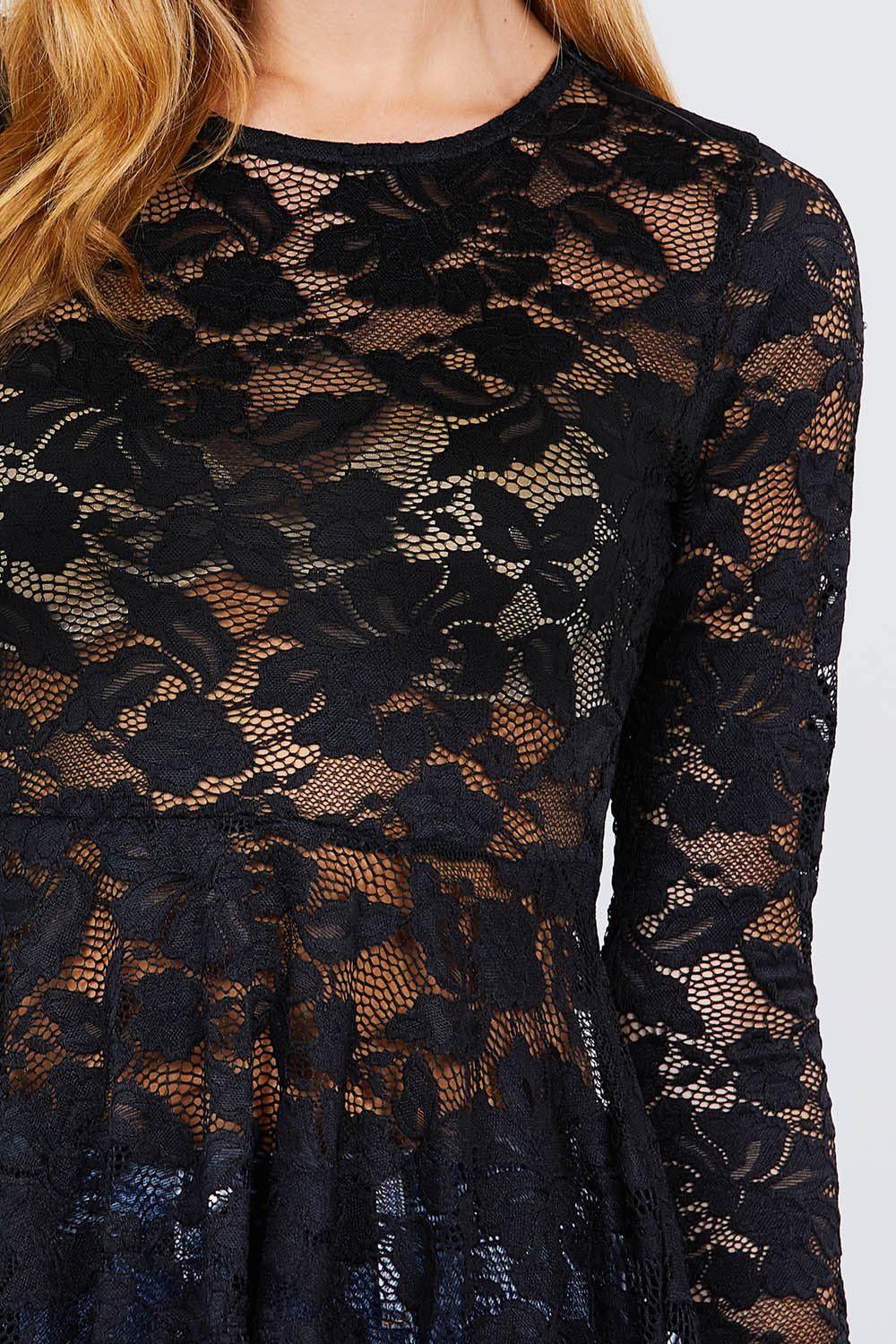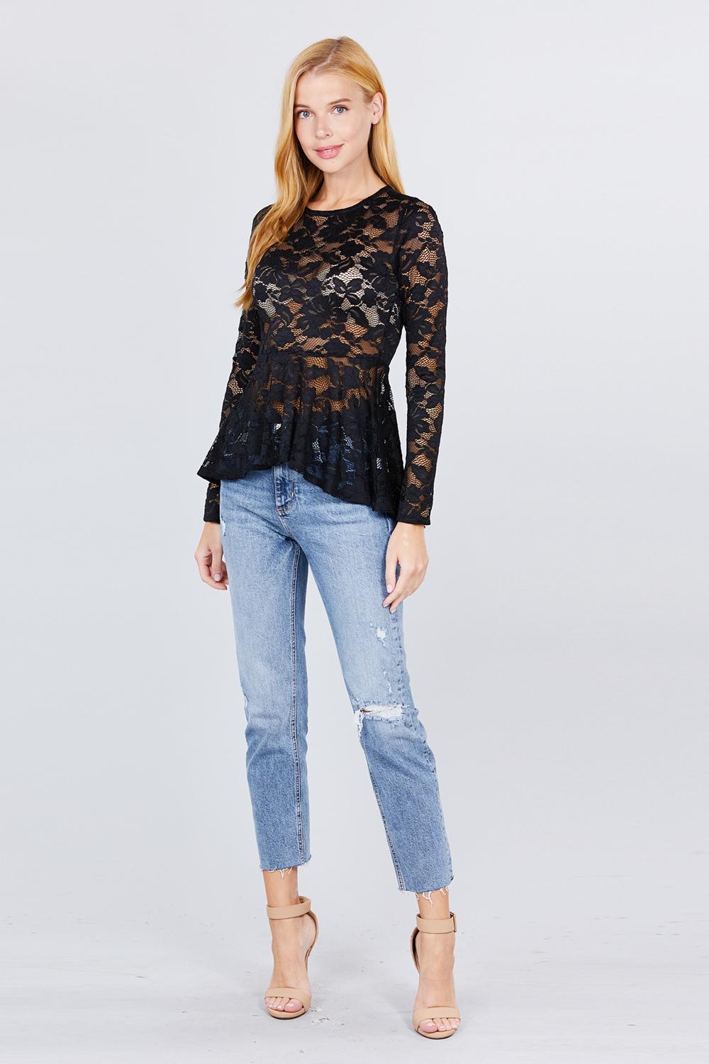 LONG SLEEVE ROUND NECK PEPLUM LACE TOP