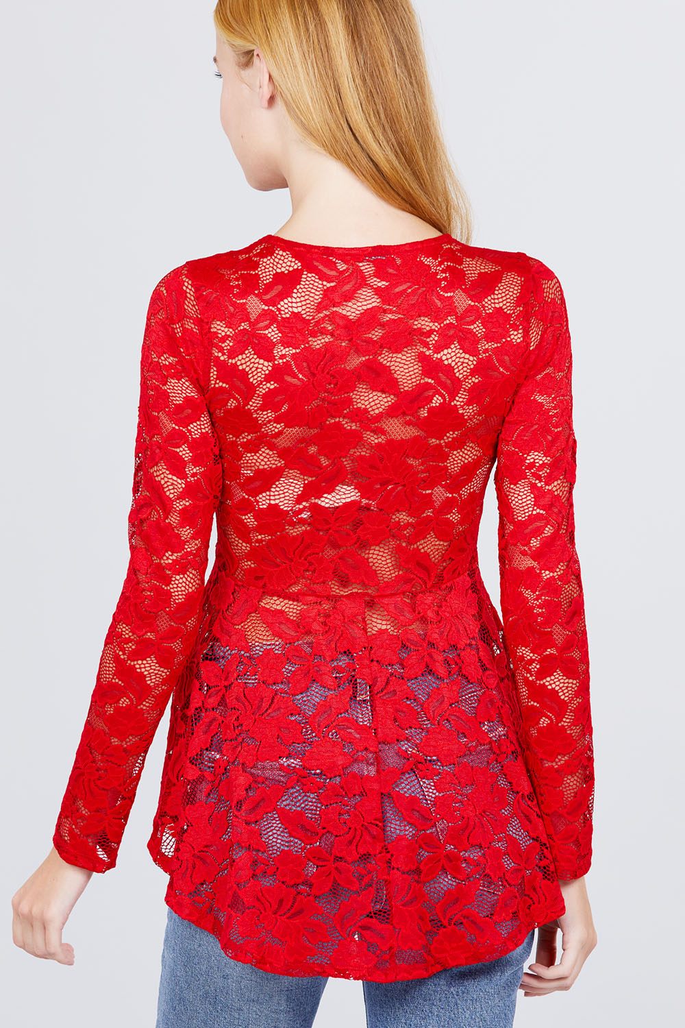LONG SLEEVE ROUND NECK PEPLUM LACE TOP