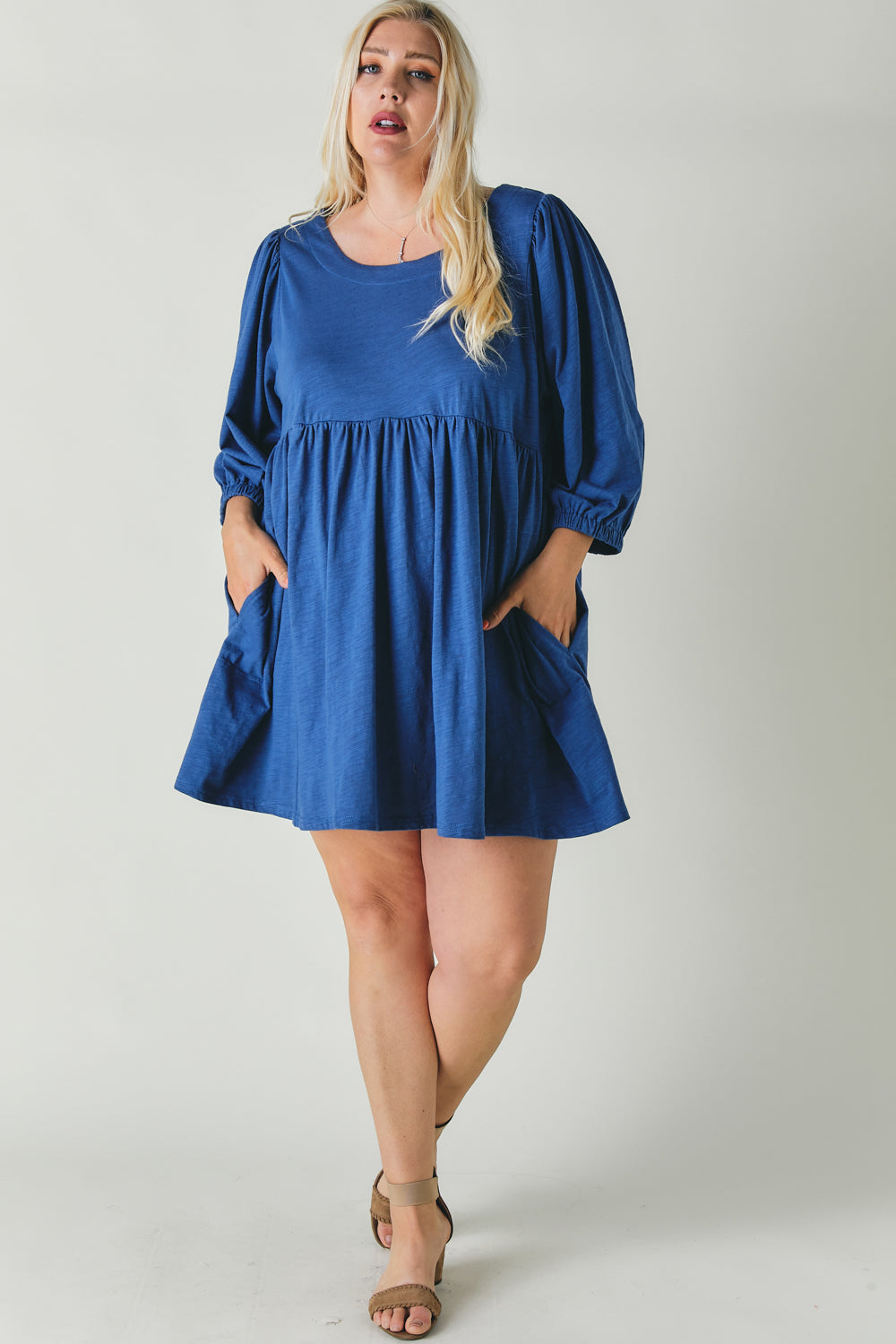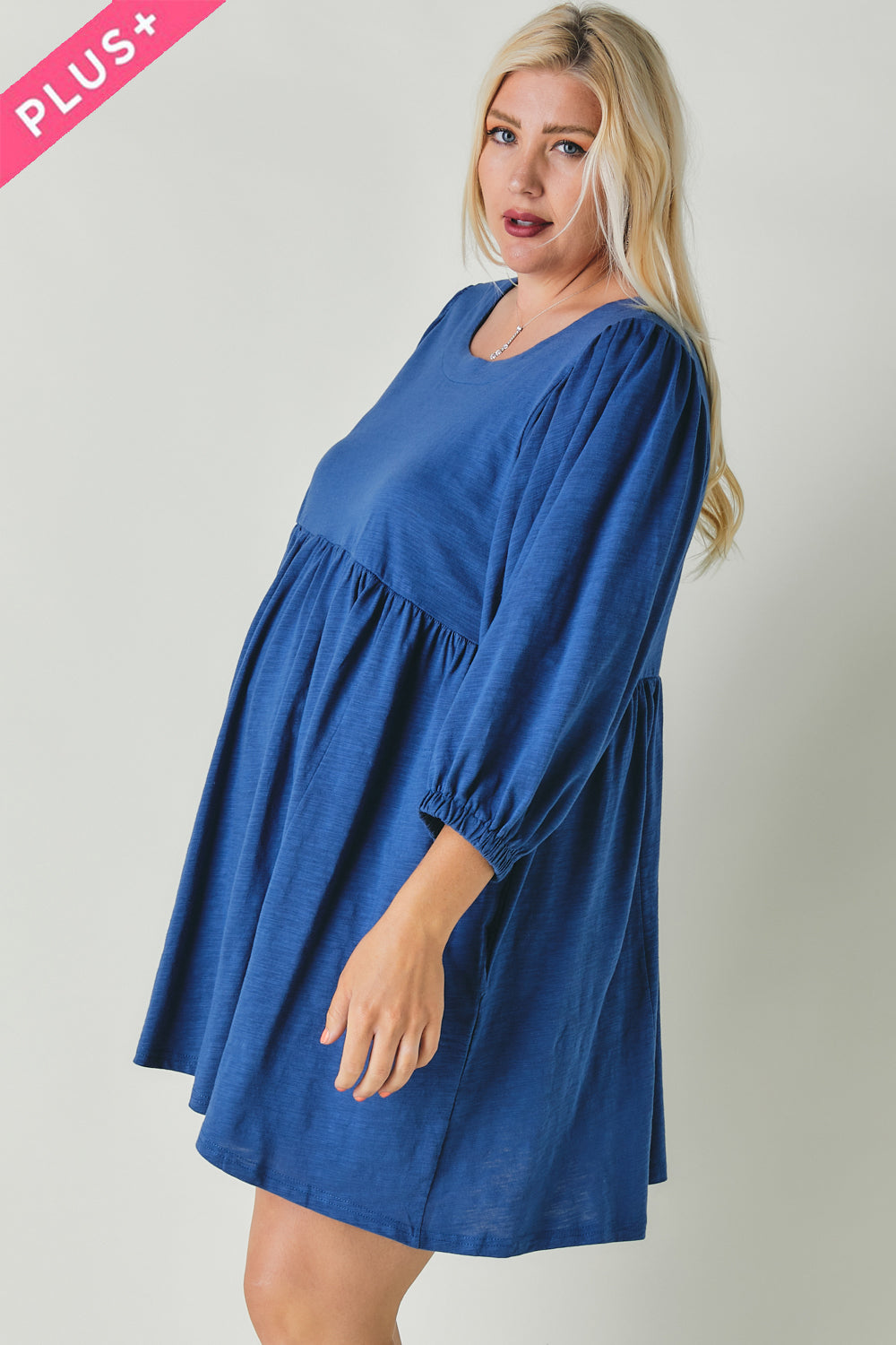 SOLID ROUND NECK LONG SLEEVE MINI DRESS 100% Rayon