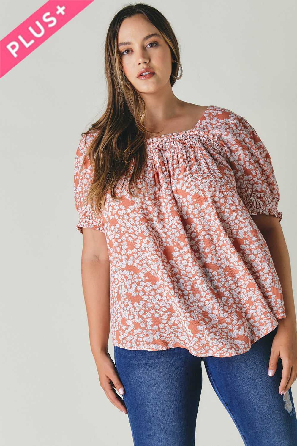 SQUARE NEK LINE WITH SMOCKED DETAIL TOP 100% Rayon