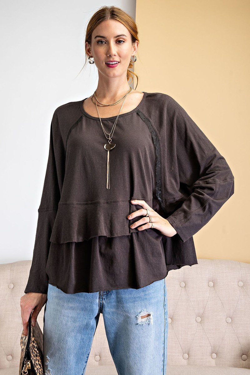 LACE TRIM DETAILING. LOOSE FIT AND RELAXED SILHOUETTE