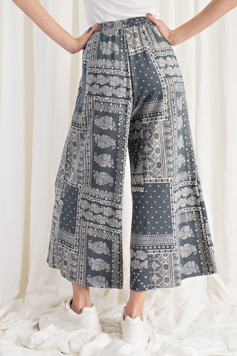 FEATURED IN A SOFT FABRICATION. WIDE LEGS. A VINTAGE INSPIRED PAISLEY PATTERN THROUGHOUT. HIGH RISE