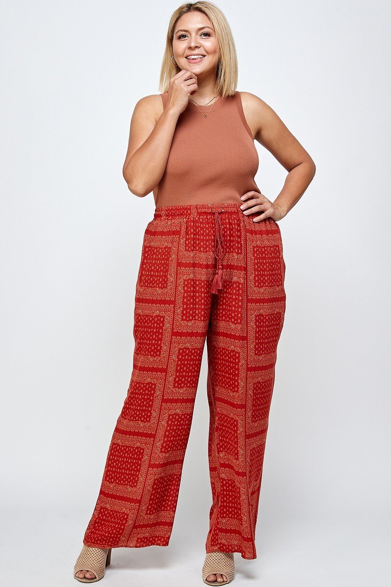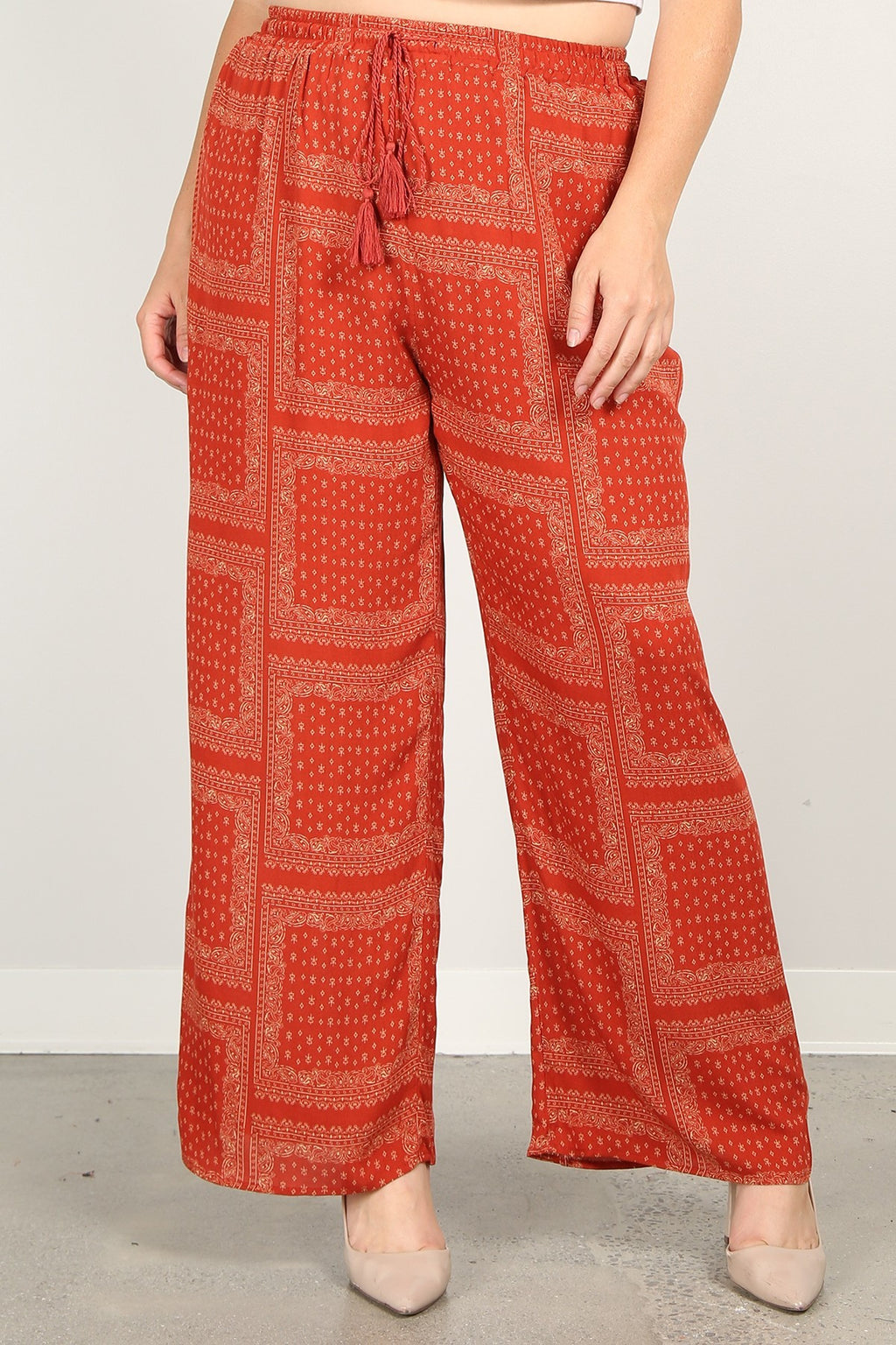 Bandanna Printed, Full Length Wide Leg Palazzo Pants