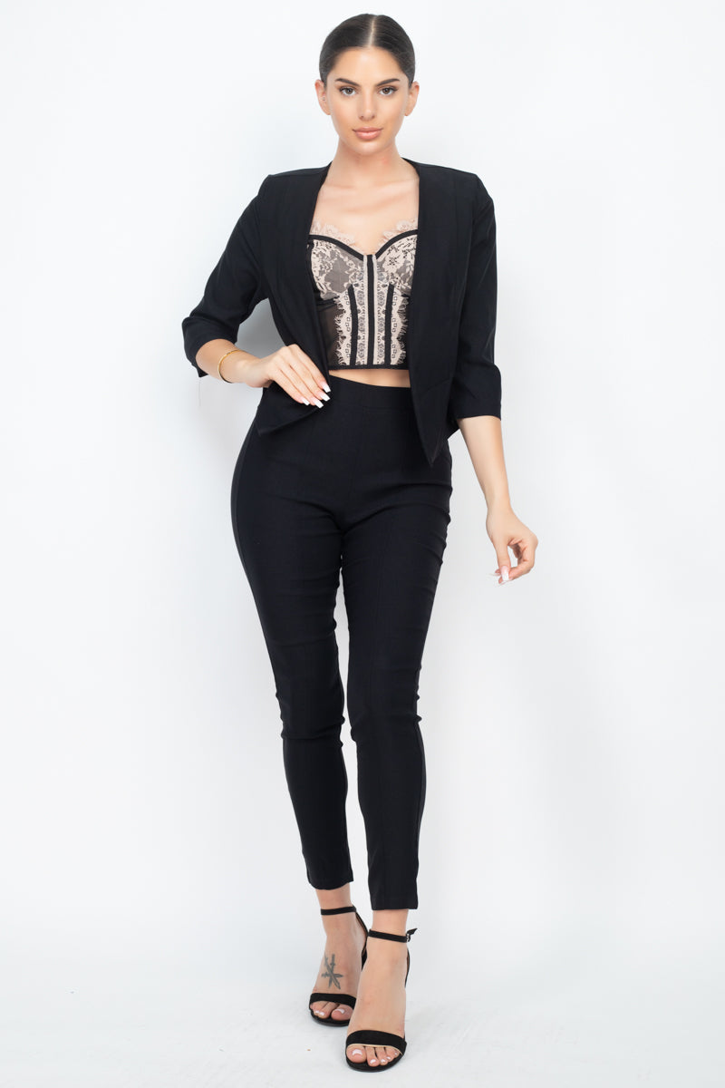 3/4 Sleeves Blazer & Capri Pants Set
