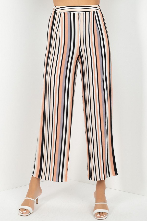 Stripped Scoop Neck Top Wide Leg Pants Set