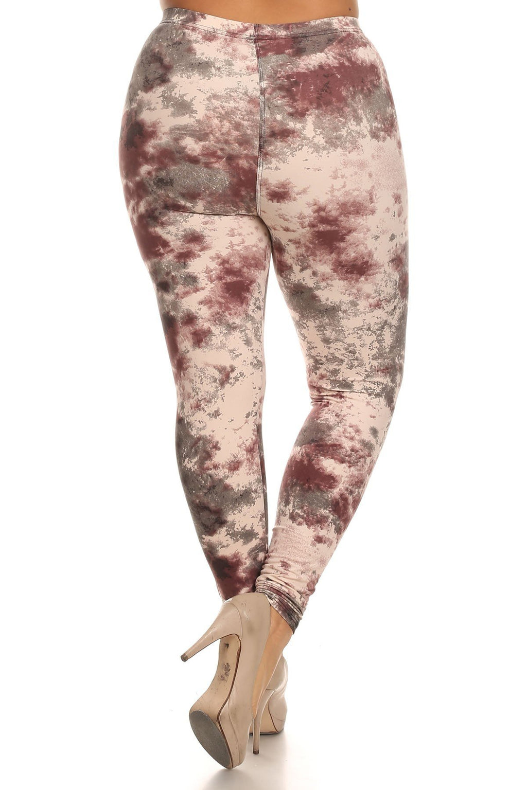 Plus size tie dye print, full length leggings in a fitted style with a banded high waist
