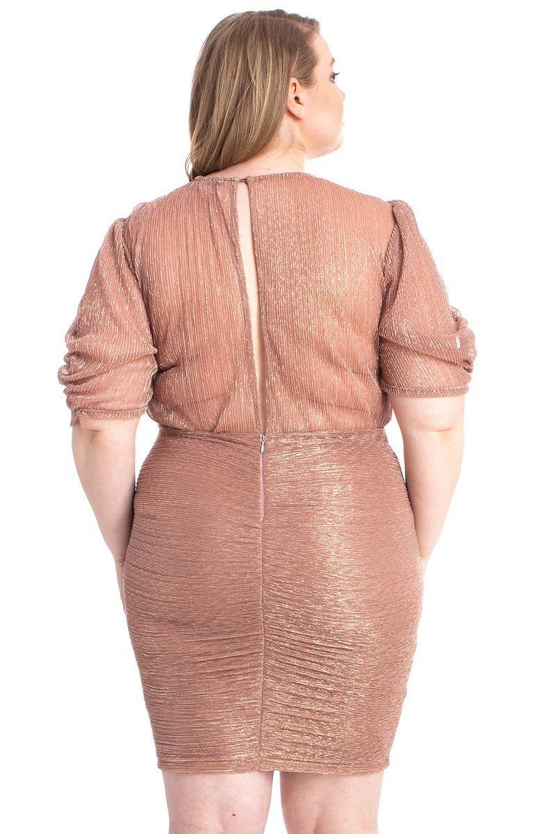 Ribbed Shimmer Shirring Mini Dress