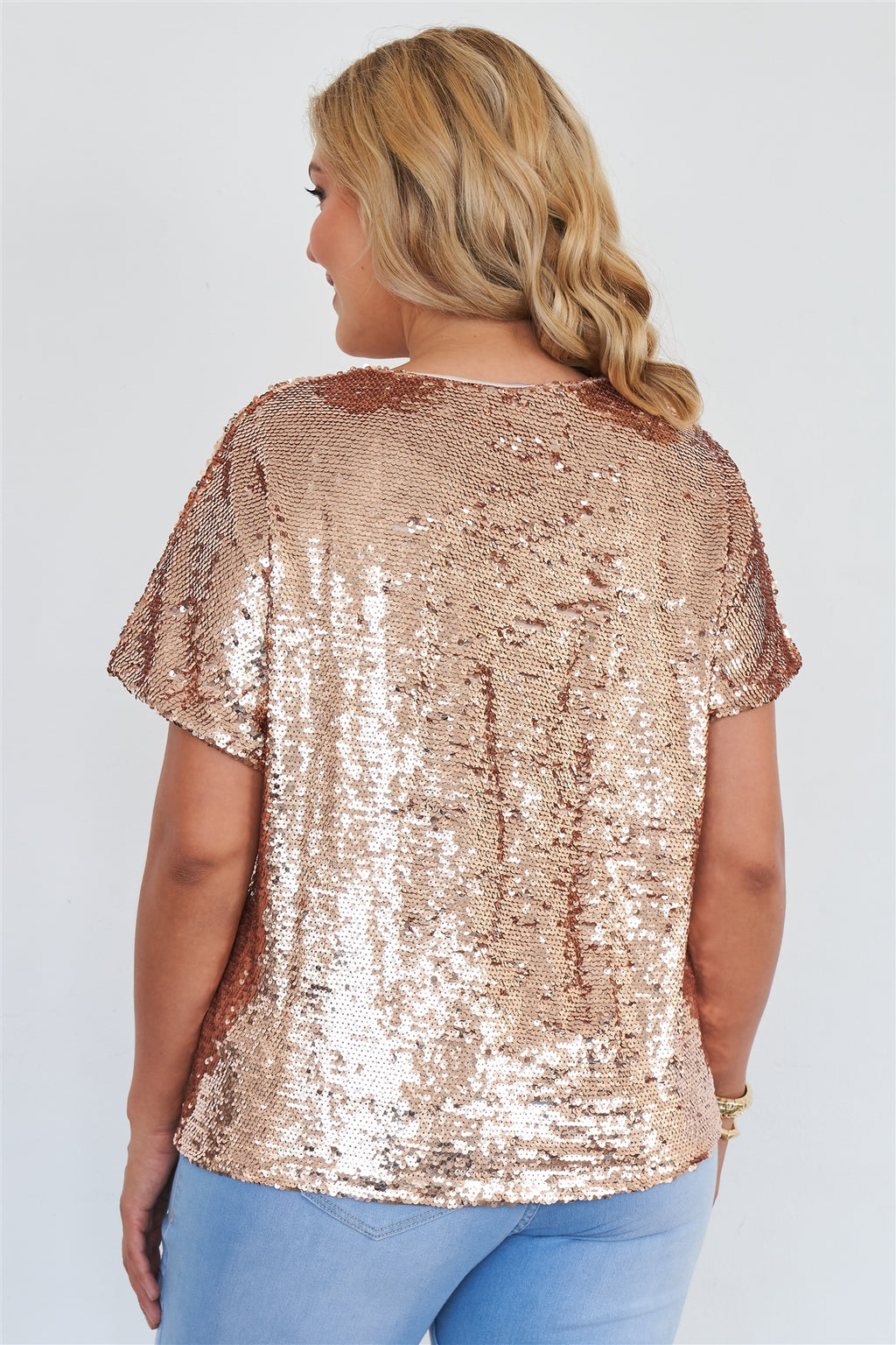 Plus Size Rose Gold Short Sleeve Sequin Top