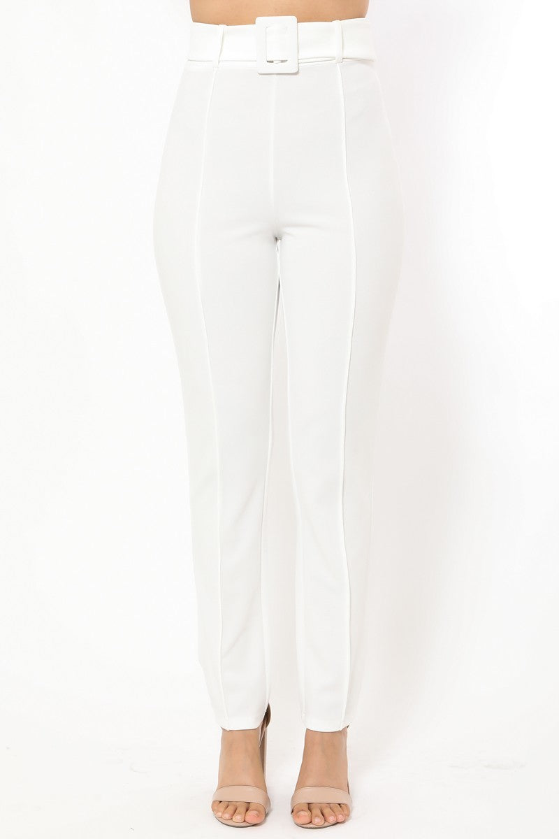 Ankle Tapered Self-fabric Buckle Belt Pants