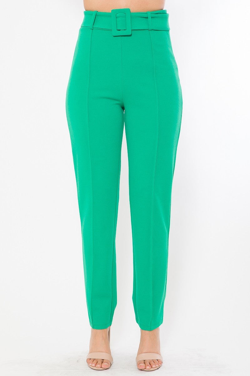 Ankle Tapered Self-fabric Buckle Belt Pants
