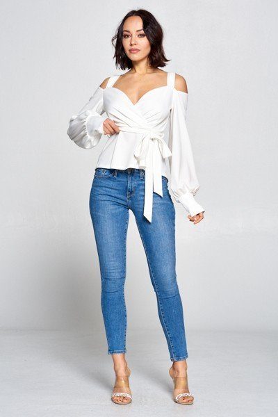 LONG SLEEVE COLD SHOULDER TOP
